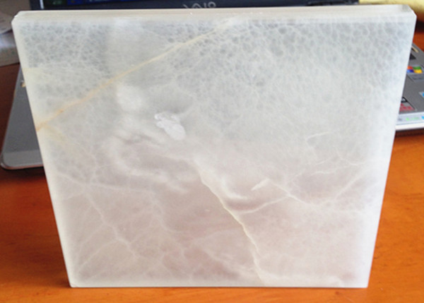 Thin onyx stone laminated glass is produced through an innovative technology combining stone and glass processing skills without using liquid resin glue. Thin onyx stone laminated glass is comprised of double layers of extra clear glasses laminated with1-2mm thin natural stone by Baclit Organic interlayer. Baclit Organic interlayer block UV Wave band of 380nm, with our special edge treatment and special humidity-resistant formula, Thin onyx stone laminated glass is finished with the ability to resist on humidity, delamination and chemical corrosion in the air.